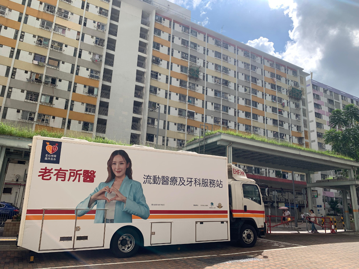 印有「愛芯慈善大使」李佳芯 Ali 形象的牙科流動車駛進社區,帶來的不僅是醫療支援,更是一份真摯的關懷與溫暖,體現了「老有所醫」推動長者牙科健康的承諾。
